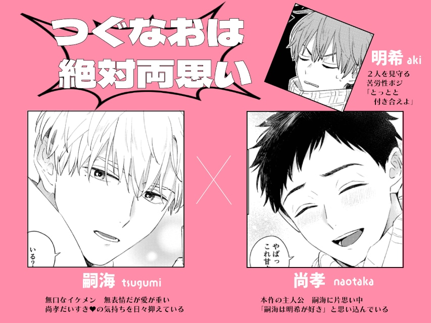 【SNSで話題の創作BL!】『つぐなおは絶対両思い』(著:小木カンヌ先生)が本日より連載スタート!【試し読みあり】