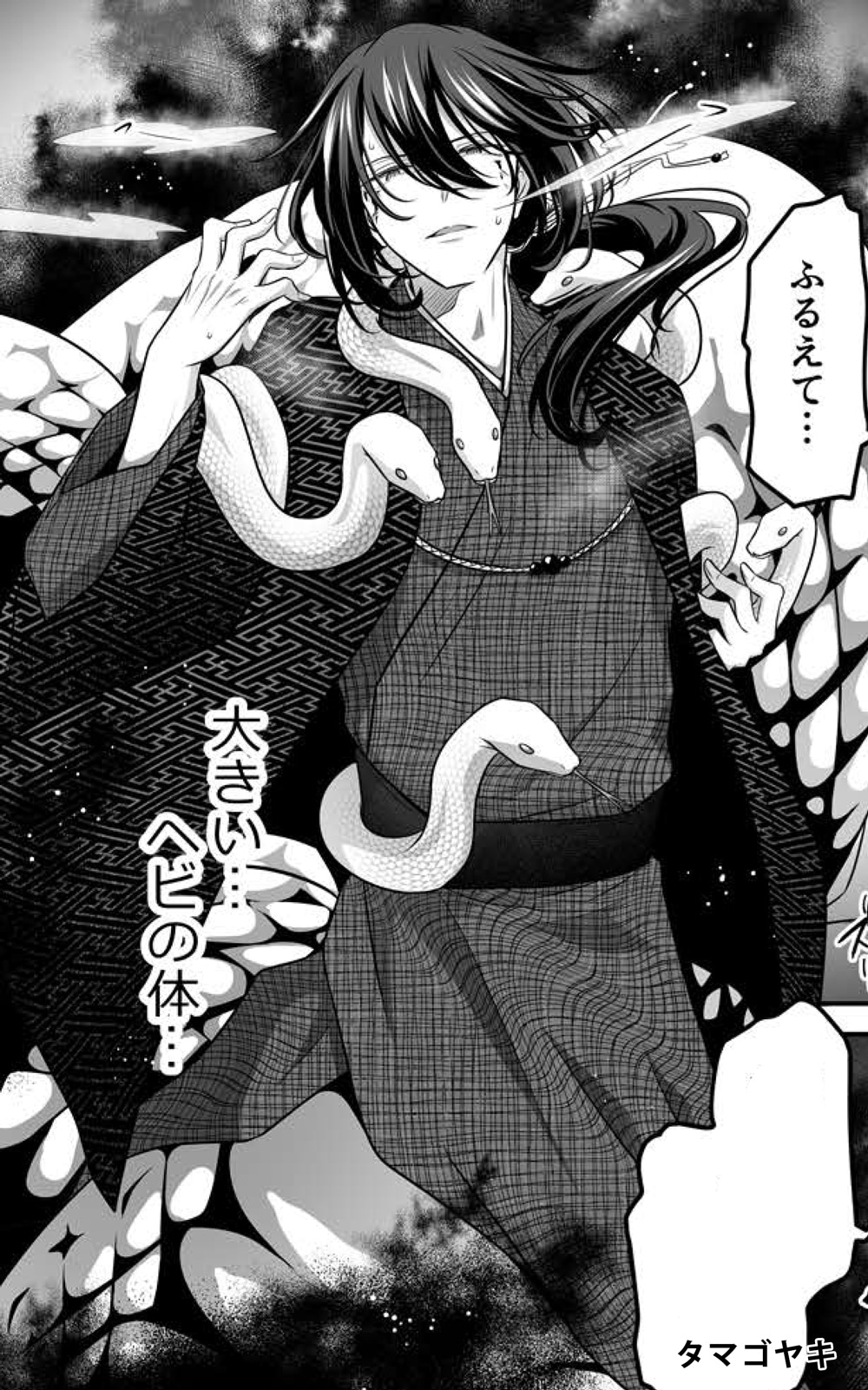 一花を襲う呪いというか神というかは、巨大な白い大蛇の身体をしたイケメン・クチナワ様。太くて長い大蛇ボディで一花を巻き取り、飲み込み、ぐちゃぐちゃに愛する……こういう神様に出会えるなら、祠を壊すのもいいかも?(よくない)