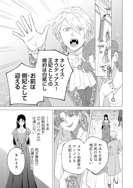 王太子に婚約破棄をされ、王宮の嘲笑の的となった。正妃ではなく側妃として執務をこなす事、手柄を全て王となった王太子に差し出すことを要求される。それは彼女の母が平民で、貴族の血を半分しか引いていない故だった。