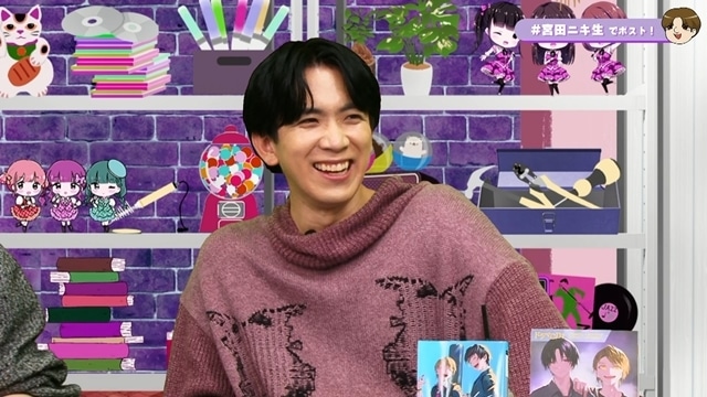 コーナーの最後に、ドラマCDでミノル役を担当している声優・斉藤壮馬、カイ役を担当する佐久間からお祝いのコメントも届き、そこから他のキャストの話にもおよび、改めて最高の仲間に囲まれていることを確認した宮田でした。