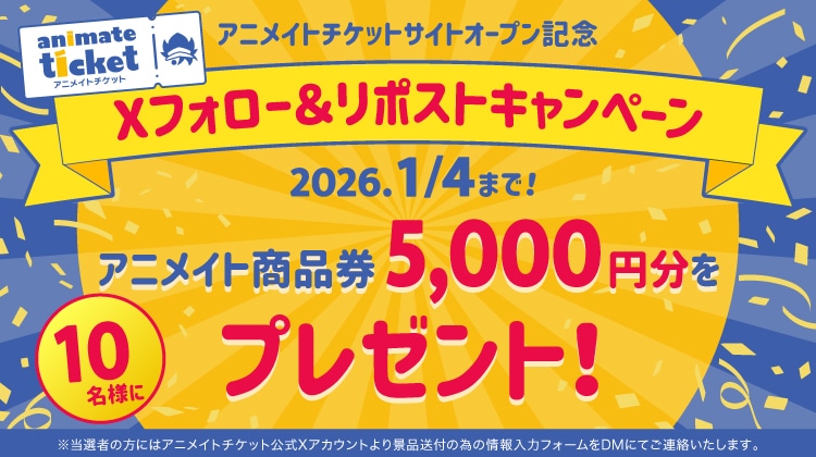 アニメイトチケットサイトオープン記念 Xフォロー&リポストキャンペーン