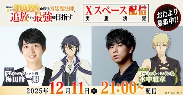 2025年10月4日(土)から、テレビ朝日系全国24局ネット“IMAnimation”枠・BS朝日・AT-Xにて放送中、ABEMA・U-NEXT・アニメ放題にて独占配信中の、TVアニメ『味方が弱すぎて補助魔法に徹していた宮廷魔法師、追放されて最強を目指す』。