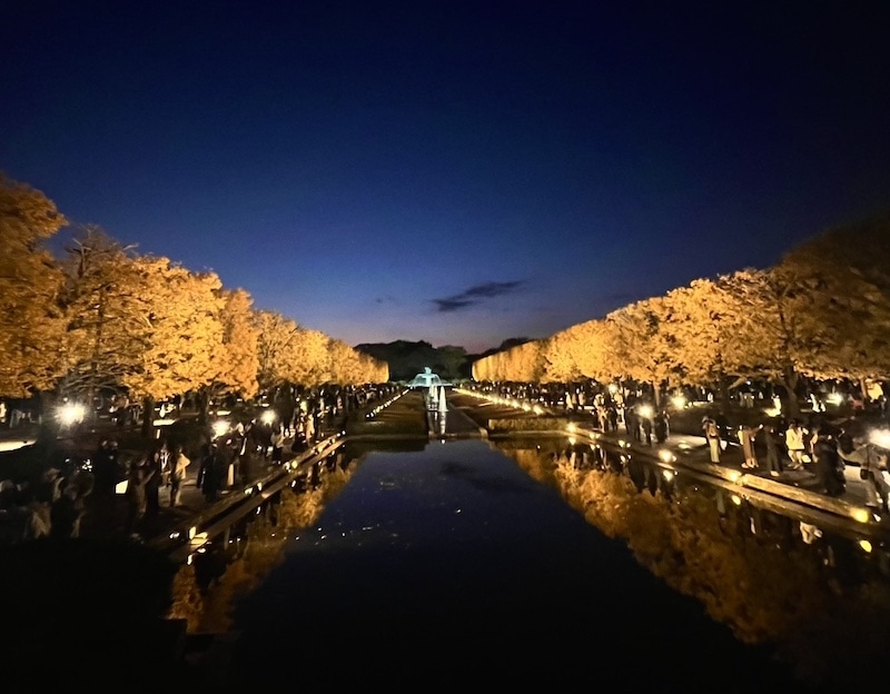 先日、国営昭和記念公園にて、「秋の夜散歩2025」という、夜の公園でライトアップされたイチョウ並木や紅葉を楽しめるイベントに行ってきました。