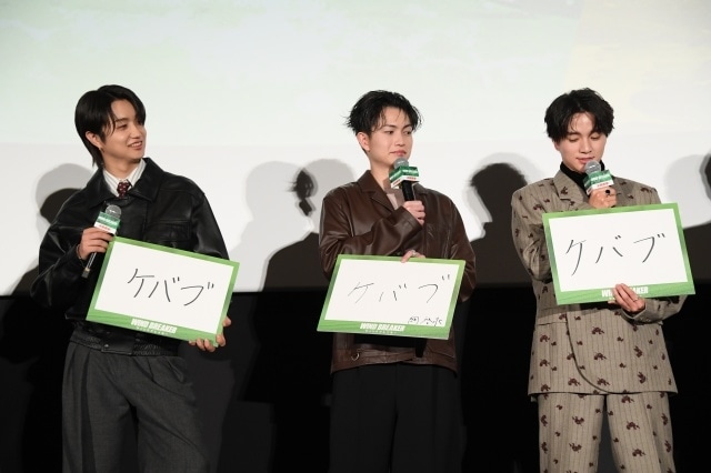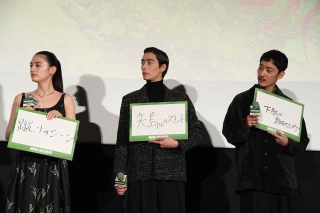 水上は、「こんなにたくさんの方々に観ていただけていることが嬉しいです。その一言に尽きるのですが、従来のヤンキー映画とは一味違う、令和ならではの新しい作品にしていくという一つ芯が通った作品になったと思います。これから一人でも多くの方に観てほしいと思うので、ぜひお友達やご家族、お知り合いに広めてください!」と熱く呼びかけ、木戸は「無事に公開されたことを本当に嬉しく思います。そして、ここからたくさんの方に観てもらうために、すでに観てくださったみなさまの感想が僕らにとってもチームウィンブレにとってもすごく励みになるので、いろんな人に感想を伝えていただけると嬉しいです」と熱弁した。