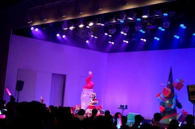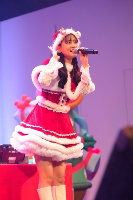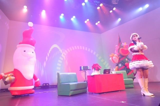 次にアイドル系の曲を歌うことになり、こちらも最近の曲か、昔の曲かをファンに聞いて選んだのは、今年のヒット曲「とくべチュ、して」(=LOVE)。グループの曲を1人で歌うのは大変なはずだが、これも完璧に歌い上げ、ファンも楽しそうにコールを送っていた。カラオケコーナーのラストは、クリスマスソングから1曲。ここでは「2曲考えてきたんですけど、自分の欲に任せるかどうするか……」と迷っていたのだが、ファンに後押しもあって、欲に従い選んだのは、越前リョーマ(CV.皆川純子)の「ふたりきりのMerry Christmas」。コンテンツへの愛も感じられる歌唱で、聖なる仲間たちと、ひと足早いクリスマス気分を味わっていた。