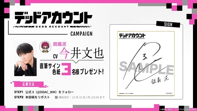 さらに、公式Xにて鋭義泥役の今井文也さんのサイン入り色紙プレゼントキャンペーンを開始しました! キャンペーン詳細は公式Xをご確認の上、ぜひご参加ください!