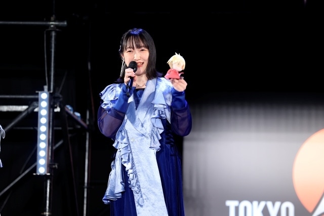 メリル役のあんどうは、本日欠席となってしまったヴァッシュ・ザ・スタンピード役の松岡の代打として私物のヴァッシュぬいぐるみ持って登壇。「登壇する前ドキドキしていたんですが、ステージ袖で内藤先生がとても緊張されているのを見て、逆に落ち着いてきました笑。こうしてファンの皆さんのお顔が見られてうれしいです。」とにこやかに挨拶。