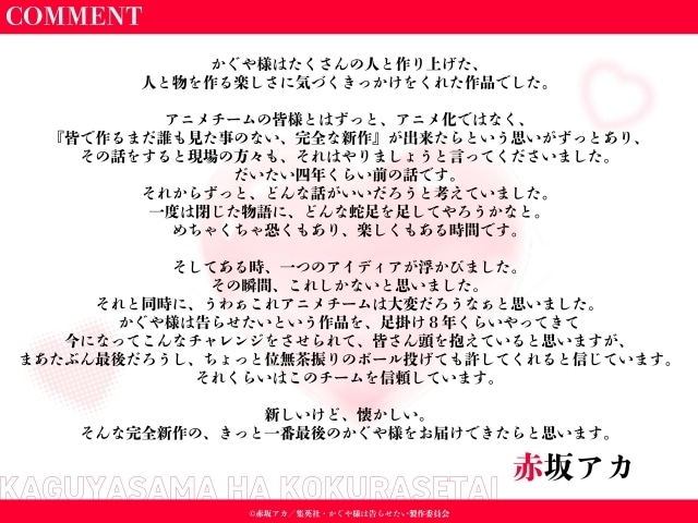 完全新作劇場版『かぐや様は告らせたい』完結編 制作決定・特報映像解禁! 原作・赤坂アカ先生よりコメントが到着