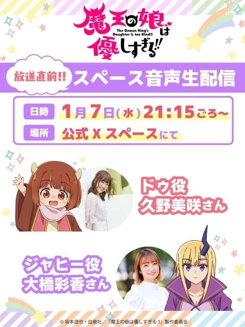 第1話放送直前である、1月7日(水)21:15より、公式Xスペースにて出演声優たちによる音声生配信企画が決定しました!
