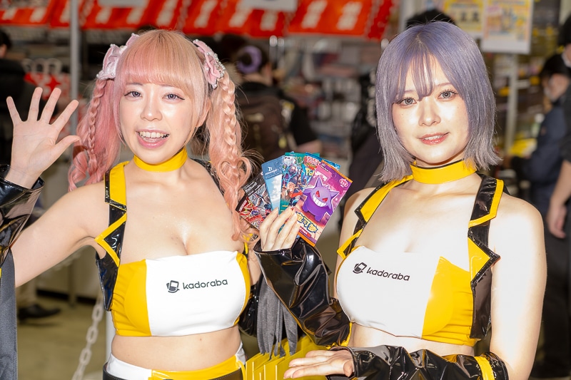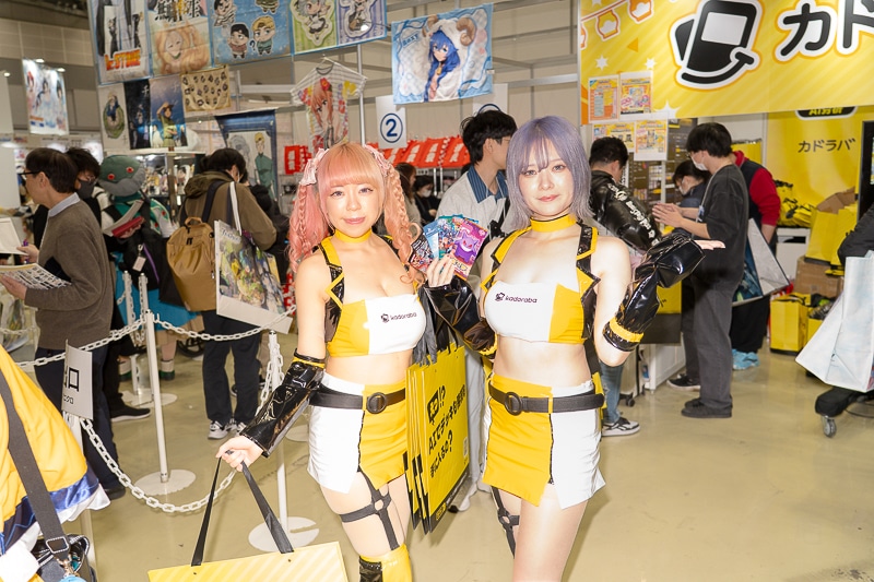 各メーカーのブースでは、それぞれの作品や新作タイトルのキャラクターの公式コスプレイヤーやコンパニオンが多数出演しており、来場者の視線を集めていました。