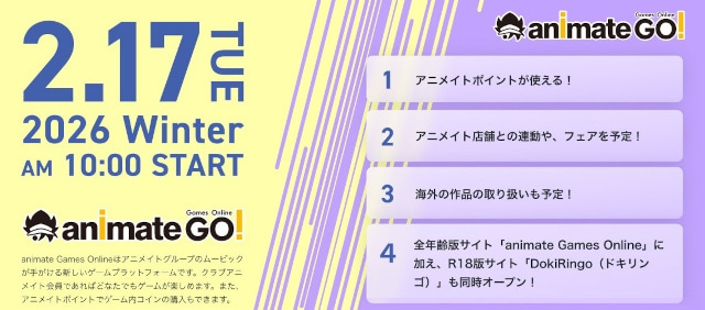 アニメイトグループのムービックによる新規ゲームプラットフォーム! 「animate Games Online」2月17日(火)10時グランドオープン!!