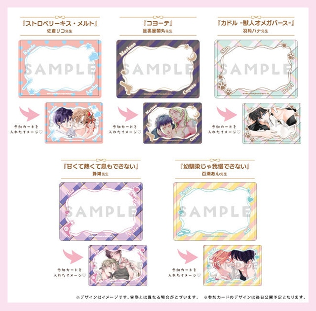 プロジェクトには佐倉リコ先生『ストロベリーキス・メルト』、座裏屋蘭丸先生『コヨーテ』、羽純ハナ先生『カドル ‐獣人オメガバース‐』、蜂巣先生『甘くて熱くて息もできない』、百瀬あん先生『幼馴染じゃ我慢できない』の計5作品が参加。