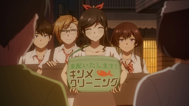 カビだらけで汚れていた祭の衣装を、なんとか綺麗にしようと懸命の金目さん。毬祥、久里留、守大も作業を手伝う。皆の頑張りで、なんとか祭に間に合わせることができた。