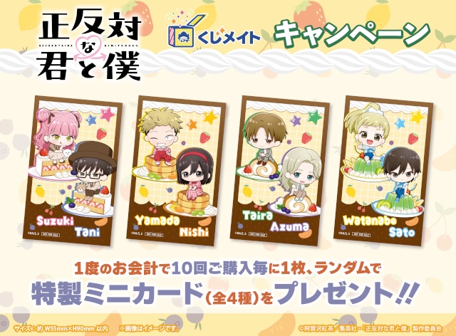 TVアニメ『正反対な君と僕』くじメイトを、1度のお会計で10回ご購入ごとに1枚プレゼント!
