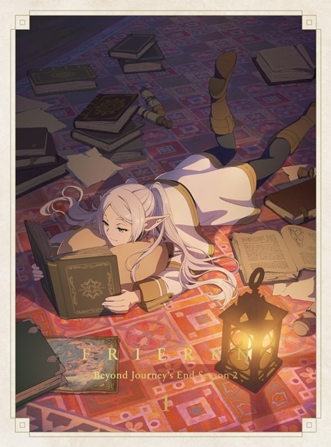 第2期のBD&DVDジャケットは、第1期に引き続き初回生産限定でアニメ制作スタジオ・マッドハウスによる描き下ろし。第1巻のジャケットビジュアルは、楽しそうに魔導書を読むフリーレンの姿。魔導書や地図が散らばった部屋で明かりを灯し、魔導書に読みふける楽しげなフリーレンの表情が描かれています。