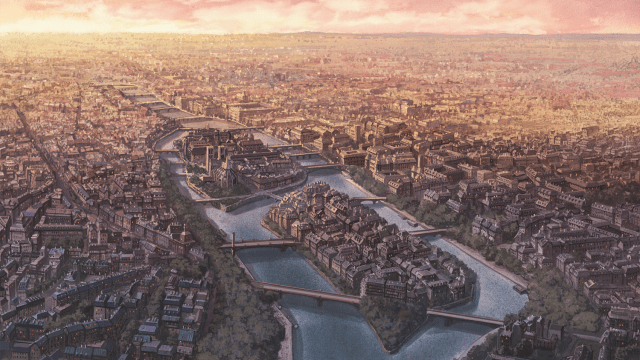 本作より、舞台となる百年前のパリが描かれた背景カットが解禁されました。あわせて、実際にパリを訪れ綿密なリサーチを行ったという谷口監督よりコメントが到着しています。