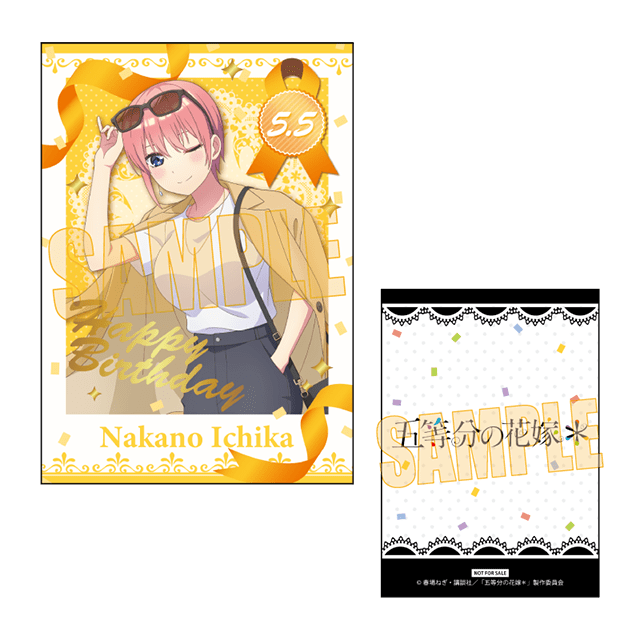 TVスペシャルアニメ『五等分の花嫁*』の関連キャラクターグッズをご購入1,100円(税込)毎に、「フォト風カード(全5種)」を1枚プレゼントします。