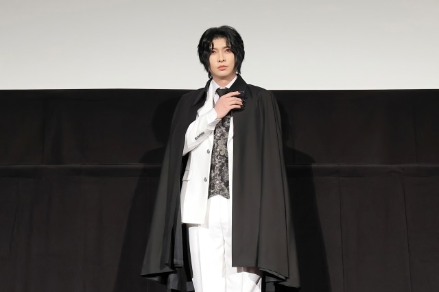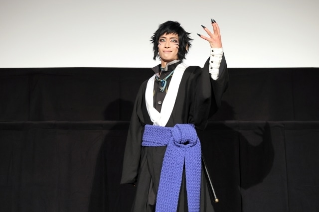 役衣裳で舞台挨拶に登場した竈門炭治郎役:阪本奨悟・髙橋 颯(W キャスト)、竈門禰󠄀豆子役:髙橋かれん、嘴平伊之助役:佐藤祐吾、鬼舞辻󠄀無惨役:佐々木喜英とともに、会場中がスクリーンに注目するなか、早速新情報をふくむスポット映像が流れる。