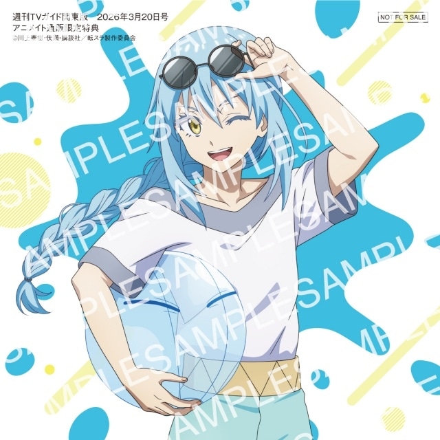「週刊TVガイド3月20日号」(3月11日発売)では、劇場版2作目となる『蒼海の涙編』が絶賛公開中の『転スラ』とのスペシャルコラボを実施。劇場版の舞台である海をイメージしたバカンス感あふれるリムルとヴェルドラの描きおろしイラストによるバックカバーのほか、同号の関東版を購入すると、アニメイト通販特典としてオリジナルスクエア判ブロマイド(89mm×89mm)が3種ランダムでプレゼントされる。リゾート島で羽を伸ばしているリムル&ヴェルドラのブロマイドを、ぜひこの機会に入手いただきたい。