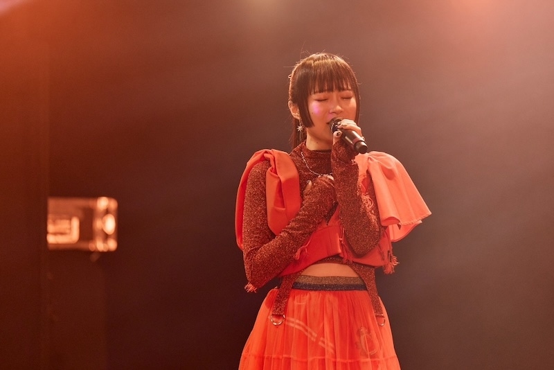 陽高さんが放ったエネルギッシュな光とはまた異なる、深く色濃い輝きを放つ春咲さん。超満員となった新宿ReNYの客席全体へ視線を送り、前方も後方も、右も左も関係なく、まるで客席にいる全員と目を合わせるかのようにパフォーマンスを届けます。