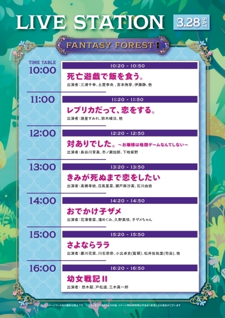 あわせて、キャスト陣が出演する⽣配信ステージのラインナップも発表されています。