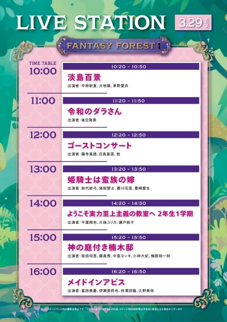 出演:⾼橋李依、⽇⾼⾥菜、瀬⼾⿇沙美、⽯川由依