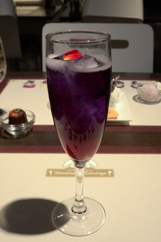 ドリンクは上品なノンアルコールカクテル。白ぶどうソーダとジンジャーエールを合わせ、エディブルフラワーを添えた優雅な仕上がりです。