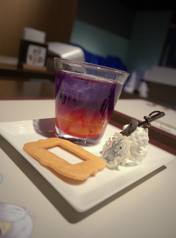 さらに、奇術芸団 Twilight Troupeをモチーフにしたドリンクもラインナップ。美しいグラデーションの一杯に額縁型のクッキーを添え、彼らが盗んだ“宝”——画家が描いた絵を表現しています。