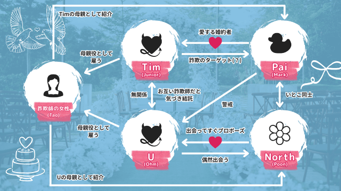 富豪Jeeramongkolthanun家の孫であるPai(Mark演)とNorth(Poon演)は、結婚詐欺師・Tim(Junior演)とU(Ohm演)にそれぞれ騙されて結婚することに。TimとUの正体が暴かれてしまうとき、TimPai・UNorthの関係はどうなってしまうのか?