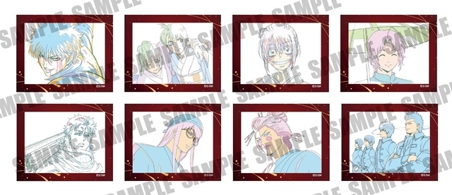 ステッカーにはクールな表情の桂や大夫に扮した近藤、空を見上げる真選組、血まみれになりながらも笑みを浮かべる銀時、神楽を支える新八、覚醒した神楽に、不敵な笑みを浮かべる神威、そして激シブな阿伏兎が描かれた全 8 種でお届け!