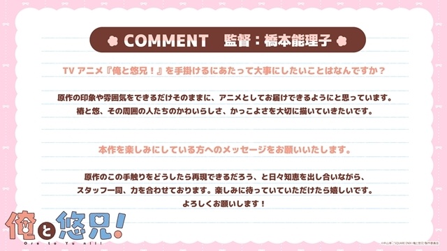 ──TVアニメ『俺と悠兄!』を手掛けるにあたって大事にしたいことはなんですか?