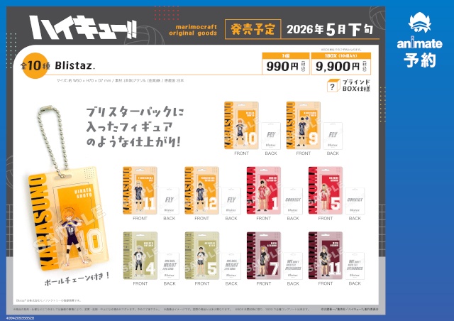ブリスターパックに入ったフィギュアのようなアクキー!? マリモクラフトから「Blistaz. ハイキュー!!」が登場!