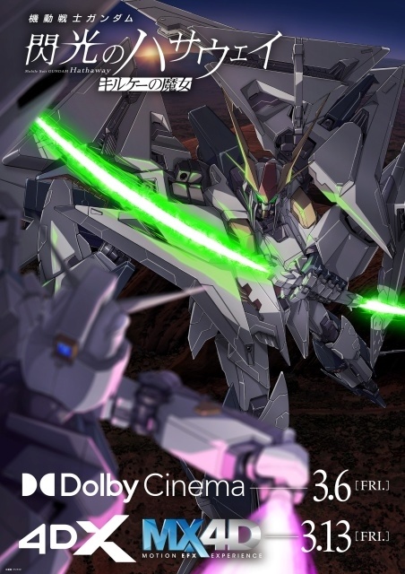 3月13日(金)より上映を開始したMX4D™、4DX®を鑑賞したファンの間では、「モビルスーツの戦いでは、まるでコックピットで操縦しているかのような迫力!」「ただでさえ大迫力の戦闘に動きが加わり、臨場感がすごすぎて恐怖を感じた」「メイス・フラゥワーのビンタは音と圧が凄まじい」といった声が寄せられ、通常上映では味わえない体感型の迫力を楽しめると多くの反響をいただいています。 本作はさらなる高みを目指し、引き続き全国の劇場にて上映中です。ハサウェイが辿る運命の行方を、ぜひ劇場で見届けてください。