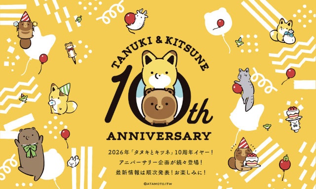 シリーズ累計130万部の大人気作品『タヌキとキツネ』が2026年に10周年を迎え、その記念企画として2026年10月にテレビアニメ化が決定!