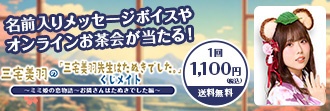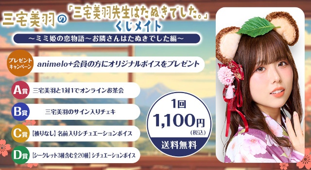 くじメイトご注文時に【キャンペーン欄へニコニコID】をご記入いただきましたanimelo+会員様へ、三宅美羽さんからのオリジナルボイスを1種プレゼントします!