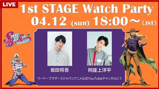 現在、好評配信中のアニメ『スティール・ボール・ラン ジョジョの 奇妙な冒険』1st STAGEをキャストと一緒に観るウォッチパーティーの開催が決定!