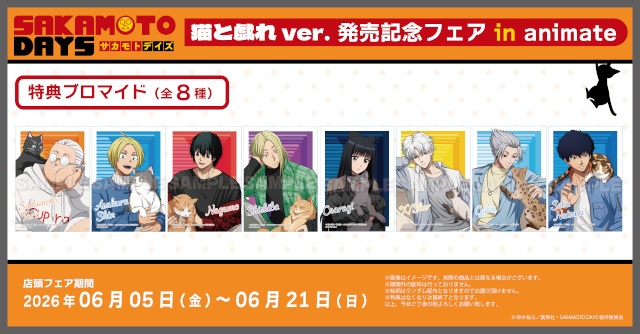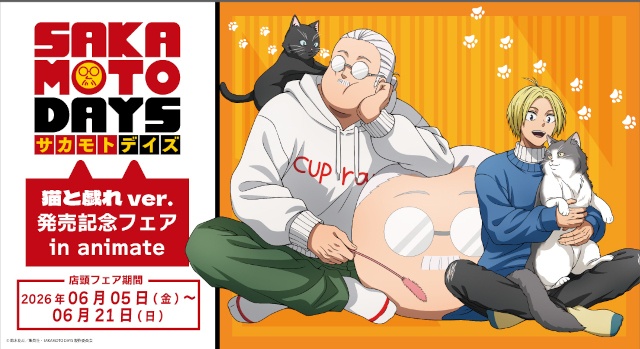「TVアニメ『SAKAMOTO DAYS』猫と戯れver. 発売記念フェアin animate」が、2026年6月5日(金)~6月21日(日)まで実施!