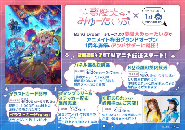 アニメイト梅田のグランドオープン1周年を記念した、さまざまなイベントが順次開催! アンバサダーには「夢限大みゅーたいぷ」が就任!!