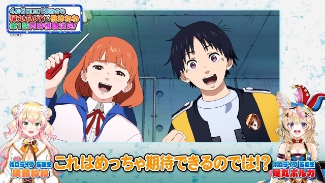 また、4月6日(月)に、ホロライブ所属の尾丸ポルカさん、桃鈴ねねさんによる第1話の同時視聴配信が実施決定。配信に先駆けて、リアクションスペシャルPVが解禁されました。