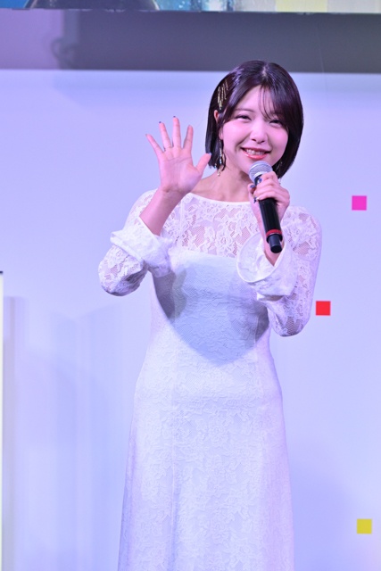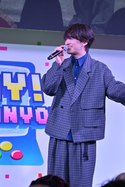ステージの後半では、ポニーキャニオンブース参加作品による対抗戦「ワニワニパニック」に挑戦。絶対にトップに立ちたいと意気込むキャスト陣の期待を背負い、代表して小笠原さんが挑みます。上着を脱いで本気モードに突入した小笠原さんは、次々とワニを叩いていきますが、得点は惜しくも「87点」。