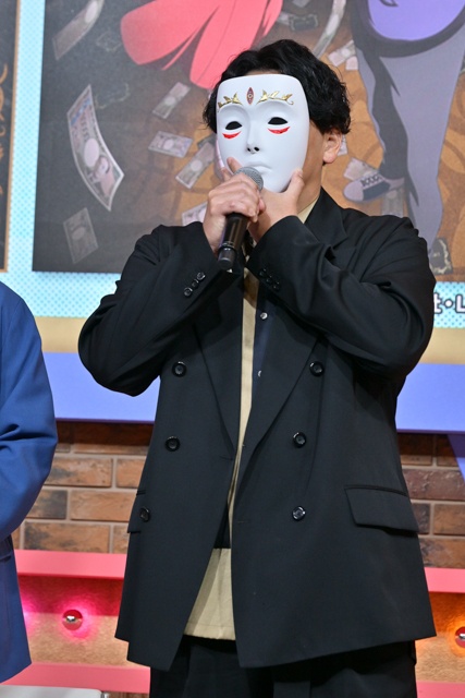 イベントがスタートすると、キャスト陣が大きな拍手に迎えられてステージへ。レロニラ役の中谷さんは、キャラクターと同じ仮面をつけて登場し、いきなり観客の視線を釘付けにします。
