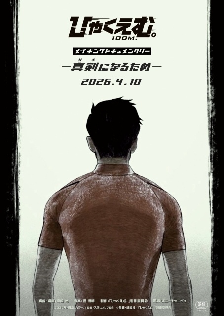 ポスタービジュアルは、本編オープニングのトガシの印象的な後ろ姿を切り取っており、映画の原点を感じさせるビジュアルとなっている。予告映像は、劇場アニメ『ひゃくえむ。』として初めて世に出た映像である<特報>をセルフオマージュしており、完成までの4年間にわたる情熱の軌跡が凝縮されたファン必見の仕上がりだ。
