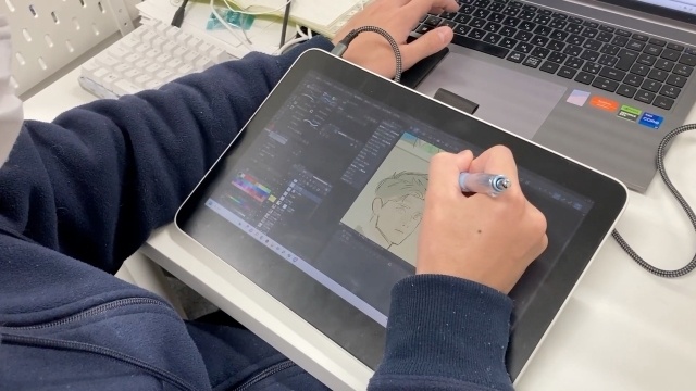 そして今回公開された場面写真には、ロトスコープのベースとなる実写カットをはじめ、原画や背景美術、音響・映像チェックの様子など、本作が完成するまでの熱気あふれる制作現場の裏側がたっぷりと収められている。