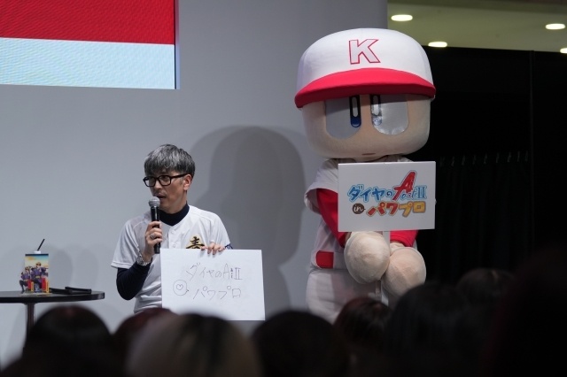 ここで特別ゲストのパワプロくんが登壇! 「『ダイヤのA actⅡ』in パワプロ」プロジェクトの始動と、ミニアニメの制作が発表された。
