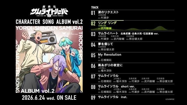 『鎧真伝サムライトルーパー』キャラクターソングアルバムvol.1、vol.2視聴動画公開!