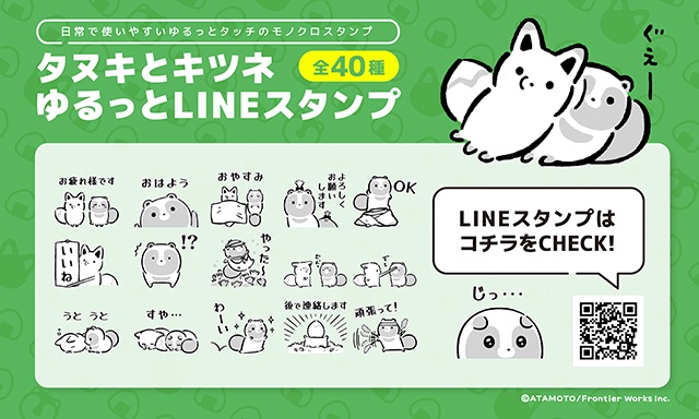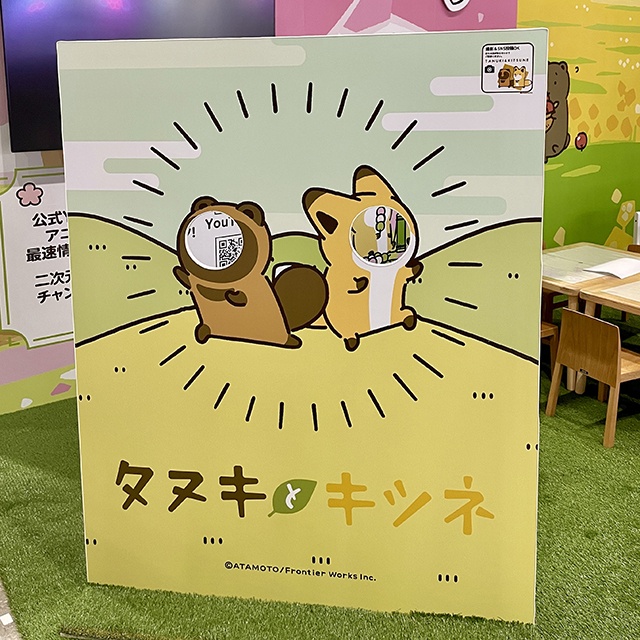 今年のフロンティアワークスブースのメインは、シリーズ累計130万部を突破! 発売10周年を迎え、2026年10月にテレビアニメ化も決定した大人気コミックス『タヌキとキツネ』(著:アタモト)。