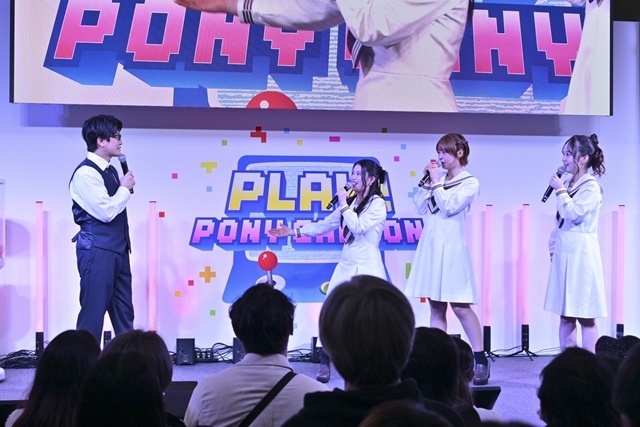 なお、今年のポニキャンステージのコンセプトは「ゲームセンター」。作品紹介や魅力を伝えるトークのあと、ガチャガチャでトークテーマを決める“ガチャガチャランダムトーク!”と“ステージ対抗!アーケードゲーム対決”(ワニワニパニック)が実施され、わいわい楽しいステージが展開されました。