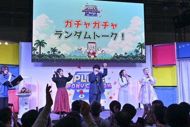 なお、今年のポニキャンステージのコンセプトは「ゲームセンター」。作品紹介や魅力を伝えるトークのあと、ガチャガチャでトークテーマを決める“ガチャガチャランダムトーク!”と“ステージ対抗!アーケードゲーム対決”(ワニワニパニック)が実施され、わいわい楽しいステージが展開されました。