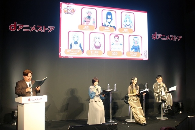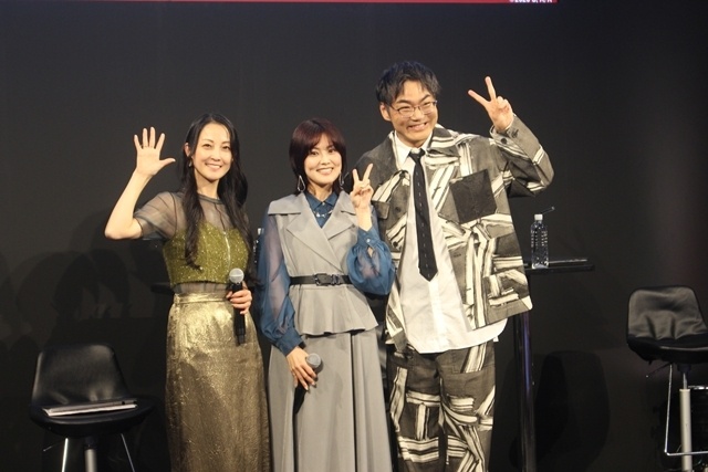 真名部響生役・金元寿子さん、エマリア役・伊藤静さん、クロード役・三宅健太さんが登壇しました。