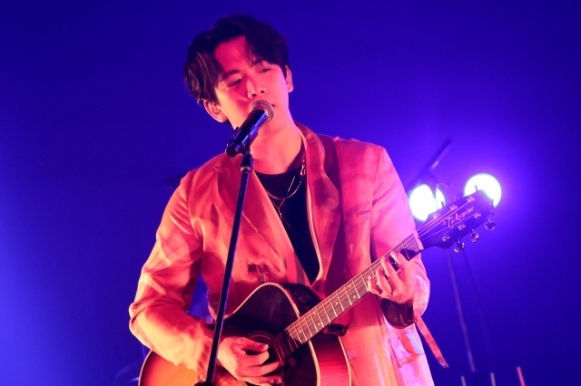 挨拶代わりの「CharismA」で激アツなパフォーマンスをみせると、事前にセトリ公開していたキタニタツヤプロデュース楽曲「サッドマンズランド」では格好良さに色気も兼ね備えた歌声が響き渡る。青と赤のライトもステージを彩り、時にしゃがみ込みながら気持ちを込めて歌い上げていく。続く「コーポA」ではアコースティックギターを手にし、ジャジーなステージを展開。多彩なジャンルやテンポ、表現力をみせる伊東の魅力を遺憾なく発揮し、伴奏が止まり伊東の声だけが響くパートでも引き込んでいた。